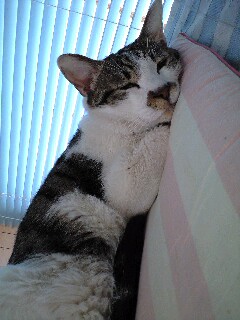 満腹ニャンタは朝から睡眠をむさぼっております。