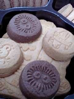 チョコレート、メープルプレーン、セサミ、紅茶(アールグレイ)…そして、中央にどーんとあるのがエンブレムを型どったクッキーはアーモンド。